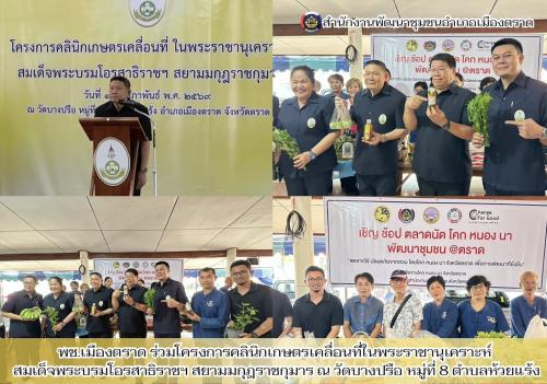 พช.อำเภอเมืองตราด ร่วมโครงการคลินิกเกษตรเคลื่อนที่ในพระราชานุเคราะห์ สมเด็จพระบรมโอรสาธิราชฯ สยามมกุฎราชกุมาร ณ วัดบางปรือ หมู่ที่ 8 ตำบลห้วยแร้ง อำเภอเมืองตราด จังหวัดตราด