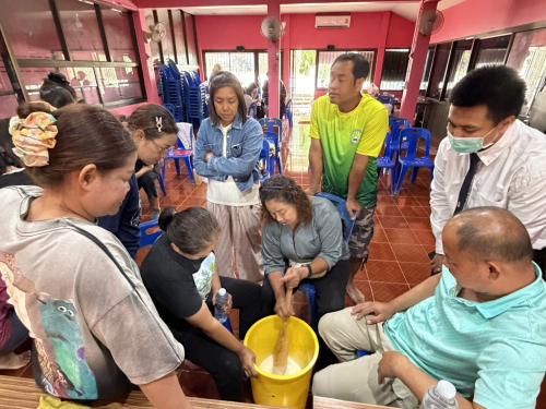 นอกจากภาคทฤษฎี ทางโครงการฯ ยังได้จัดกิจกรรมฝึกทักษะอาชีพ "การทำน้ำยาเอนกประสงค์" เพื่อเป็นการต่อยอดอาชีพ สร้างรายได้เสริม และลดรายจ่ายในครัวเรือน ให้กับกลุ่มเป้าหมายที่เข้าร่วมการอบรม นำไปสู่คุณภาพชีวิตที่ดีและความเข้มแข็งของชุมชนอย่างยั่งยืน